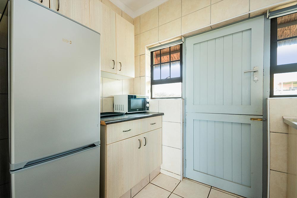 Ideal for bigger families or groups, our three-bedroom chalets sleep five and include a kitchen, dining area, bathroom, and direct beach access – plus a shared braai area for relaxed evenings.